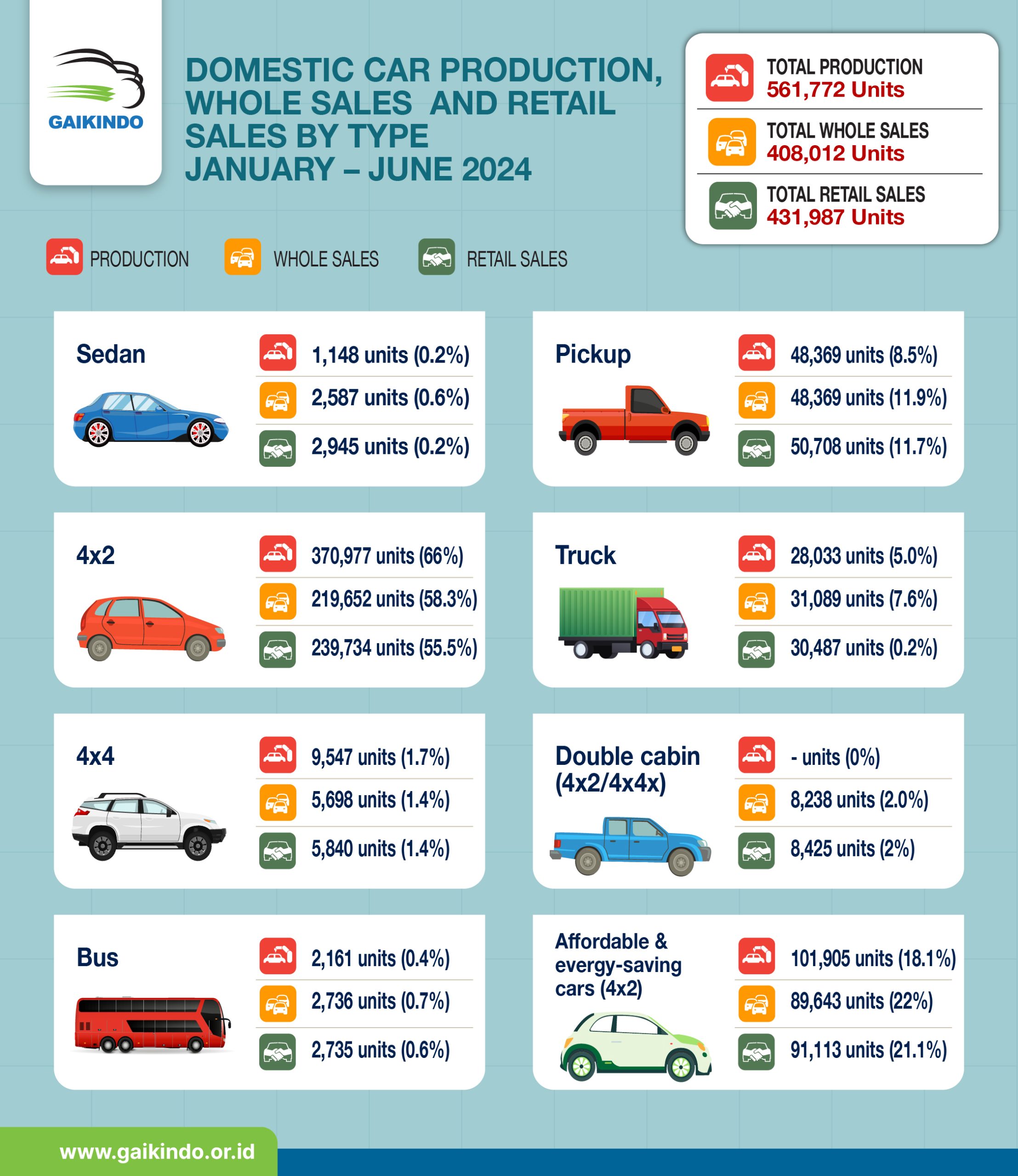 Indonesia All-type Vehicle Production, Whole Sales, and Retail Sales January – June 2024